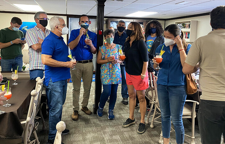 Ya estamos en el Okeanos II que nos llevará hasta la Isla del Coco. El grupo es heterogéneo. activistas, figuras académicas, empresarios, fotógrafos, responsables de Amigos de la Isla del Coco (FAICO) y del Área de Conservación Marina Cocos, guardaparques, administradores, donantes, entre otros, conformaron el grupo. La actividad se realizó con los protocolos establecidos por las autoridades de salud.